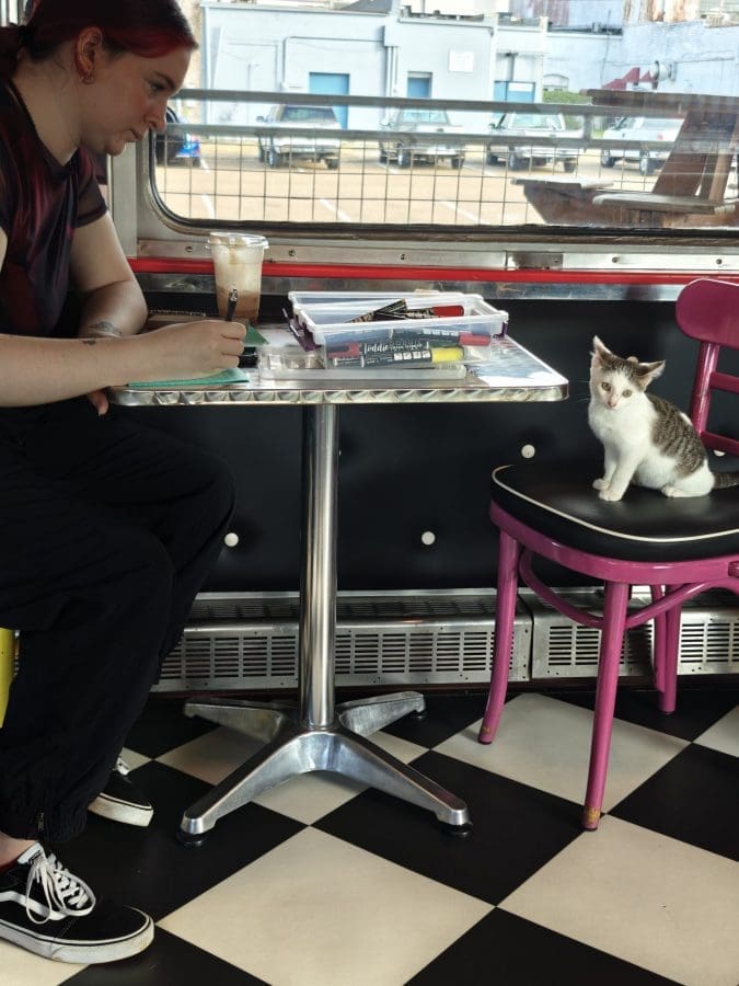 Token and Teak are the lookouts for Alley Cats. While they are shy around Hoomans, they love to hang around under the train car to say “Meow” and make sure to keep Alley Cats safe and rodent free!