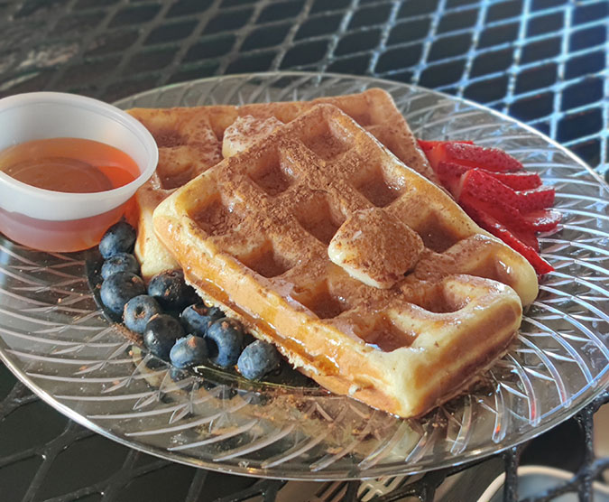 Indulge in a classic breakfast treat with our made fresh to order Mini Waffle. Topped choice of in-house whipped cream, fresh cut fruit, maple syrup and butter, or even our exclusive savory waffle stuffed with a tangy feta and breakfast sausage! Every bite is a delightful explosion of flavors, so don't miss out on this mouthwatering experience - order your Mini Waffle today!