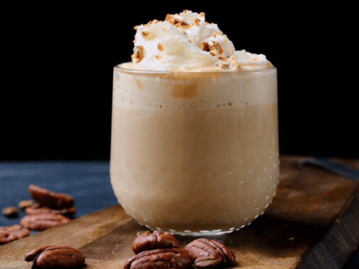 A pecan pie latte is a creamy, sweet, and nutty hot coffee drink inspired by the flavors of the traditional pecan pie.